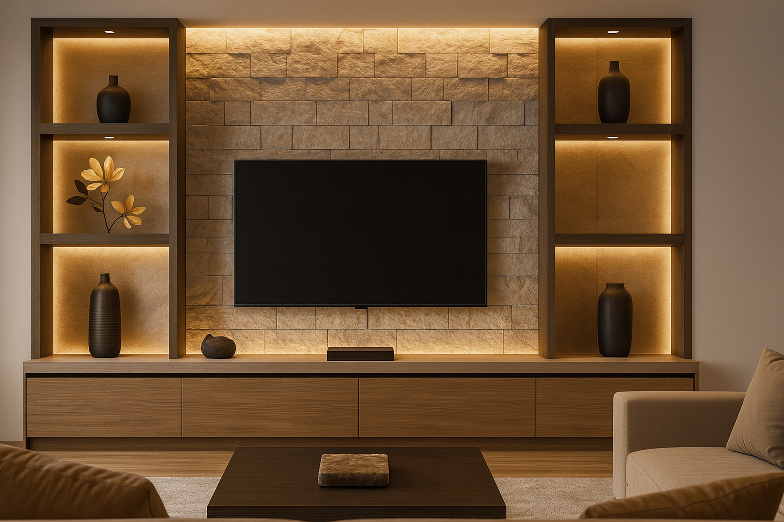 We design wall-mounted, floating, freestanding, and full-wall entertainment units tailored to your room size and style.
